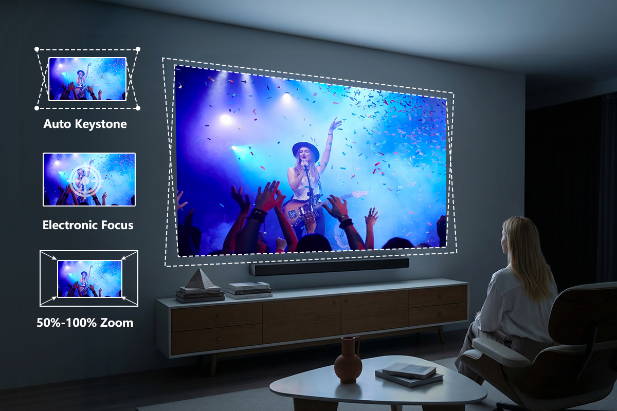 Liberate your hands with AI-powered automatic focus, keystone correction, intelligent screen alignment, and intelligent obstacle avoidance for convenient, hands-free projection.